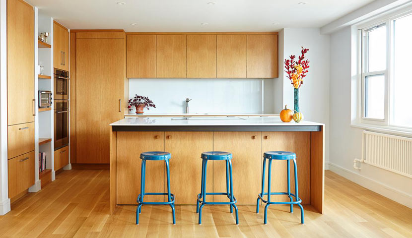 چنان که در تصاویر شماره 11 و 12 مشهود می باشد، در طراحی آشپزخانه به سبک مدرن به طور معمول از رنگ های خنثی همچون سفید، کرم و طوسی بهره گیری می شود. طرح چوب ساده نیز به عنوان یکی از ترند های رنگی در طراحی آشپزخانه به سبک مدرن می باشد.