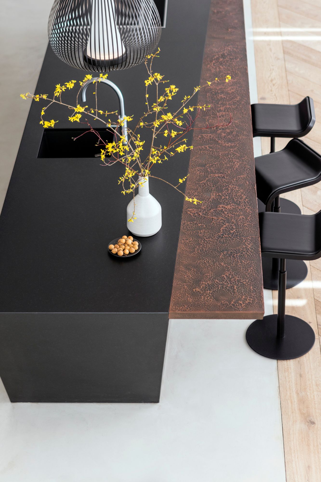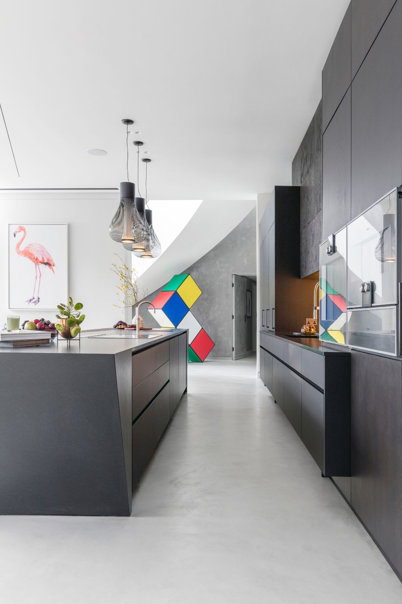 در بعد دیگر این سبک استفاده از رنگ های تیره همچون مشکی نیز به چشم می خورد. تصاویر شماره 13 الی 15 نیز نمونه های آشپزخانه مدرن با این ترکیب رنگی می باشند.