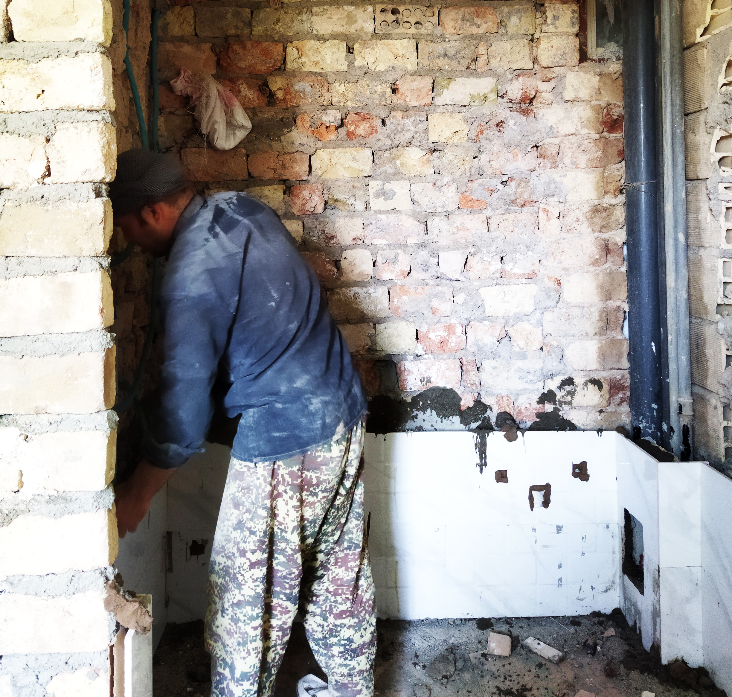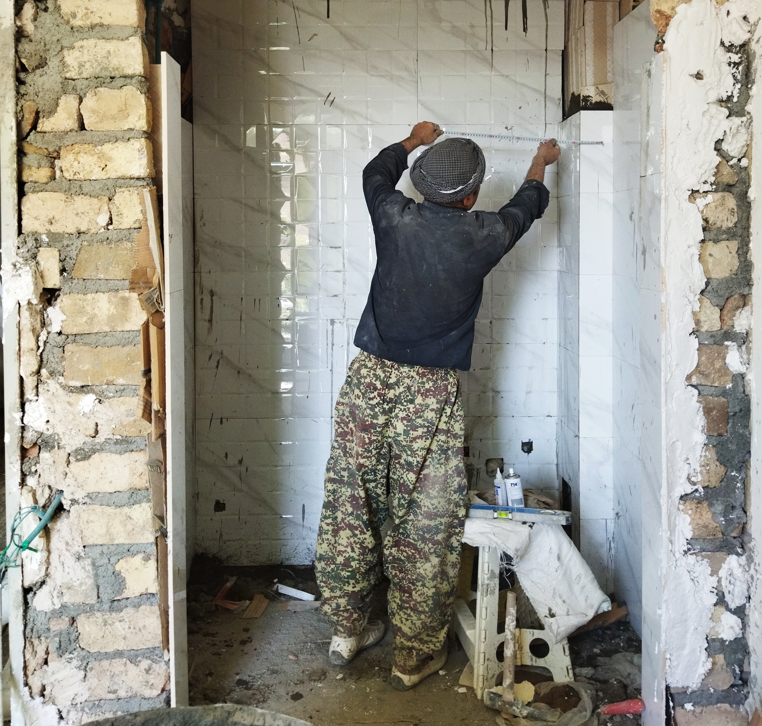 در مرحله بعد، کاشی کاری مورد نیاز سرویس بهداشتی و حمام صورت می گیرد.